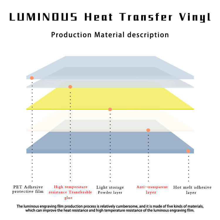 1. 夜光热转印膜材料使用环保材料,与皮肤接触无任何不适,对皮肤无伤害,如丝绸般柔软顺滑。